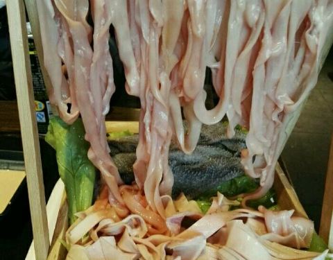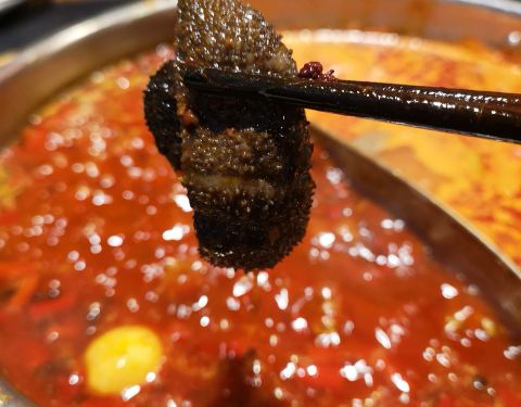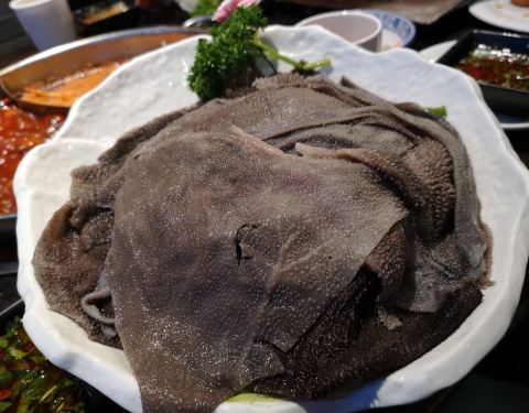 涮火锅的食材都很新鲜,特别要推荐|鲜水牛毛肚^,特别嫩,没有经过泡发过,在锅底里七上八下后口感最佳