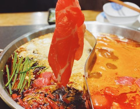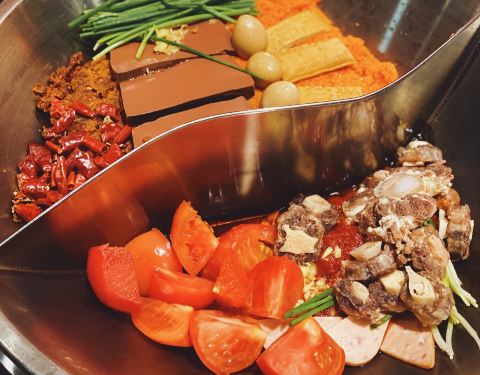锅底:「牛油番茄鸳鸯锅」 点了招牌的牛油番茄鸳鸯锅,一口正宗牛油红汤锅油而不腻、辣而不燥