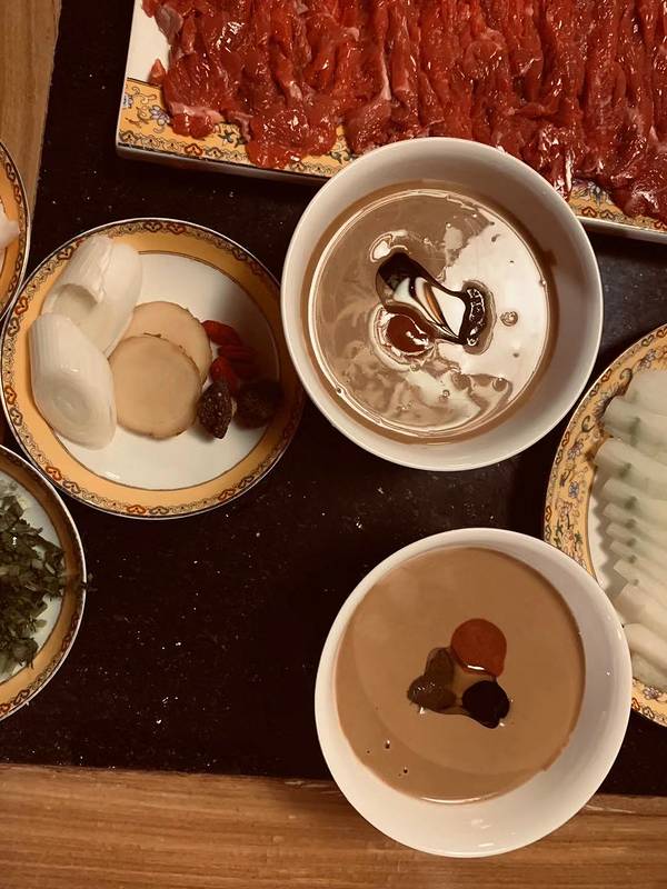 鸳鸯锅底,炭火的就是好吃,清汤部分锅底有放羊尾油,很香。辣锅的部分味道也很好,辣度合适,我对小料有要求,他家的超级正宗。自家百天羊,特别鲜嫩,煮15秒,相对比较瘦,不柴,鲜上脑也特别好吃,肉量很足,...