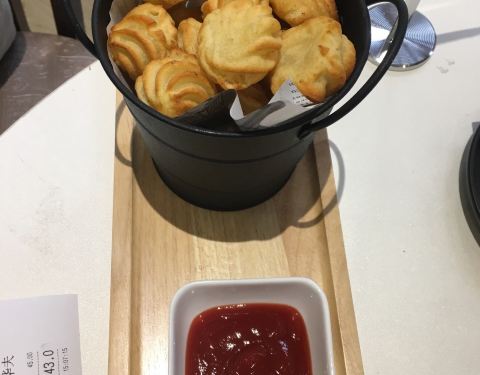 朋友中的霸王餐,在黄花岗公园旁边。 士多啤梨思慕雪山和摩卡合伙人两杯饮料,一杯是冰沙另外一杯摩卡;布朗尼冰淇淋华夫饼和曲奇薯薯,很大份,曲奇薯薯是用薯泥做成曲奇的样子,还不错;华夫饼有4大块、中间有个雪糕球,旁边还有些奥利奥点缀。很大一份,感觉是3-4人份的下午茶。挺好的