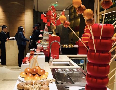入住酒店三天 前两天为了赶行程只能在行政酒廊用餐 最后一天安排了好好享用8楼味Table全日制的早餐 环境自然是不用说 宽敞的桌椅 装潢大气 服务都非常主动 餐点很丰富 除了万豪标准的一些自助美式早餐 欧陆式 中式点心等 还有当地特色的面档:红油馄饨、红烧牛肉面、担担面、臊子面 还有现煎铁板小牛排 不可错过