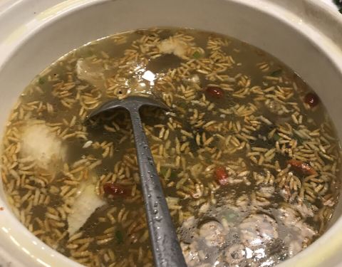 - 鸡汤上桌时会撒上一小碗炸酥了的米,与鲜美的汤混在一起脆脆的,口感超级棒