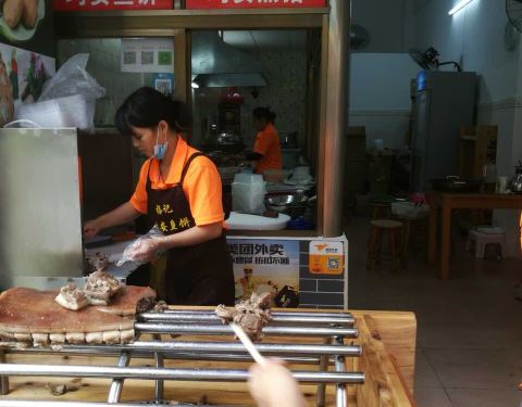 一家位於番禺沙湾古镇南门之沙湾美食外売專门店,主打是均安蒸豬及魚饼,兩者皆做得相当美味,尤真他的蒸豬,现蒸现賣,十分有特色,是逛古镇必试之選。