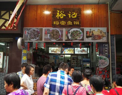 在沙湾古镇上闲逛时见到这家裕记均安鱼饼。他家在沙湾镇大巷涌路23号,位于商业街较显眼的地方,非常好找。 他家的店面不大,小吃店的装修。门前摆着不少小吃,有均安蒸猪、鱼饼、莲藕饼和墨鱼餅,还有艾饼等,价...在沙湾古镇上闲逛时见到这家裕记均安鱼饼。他家在沙湾镇大巷涌路23号,位于商业街较显眼的地方,非常好找。 他家的店面不大,小吃店的装修。门前摆着不少小吃,有均安蒸猪、鱼饼、莲藕饼和墨鱼餅,还有艾饼等,价格还比较实惠。像蒸猪一份30元,不过我不很喜欢吃,就没有买。买了鱼饼,鱼饼结实弹牙,口感不错。难怪裕记均安鱼饼门前不断有人在排队。