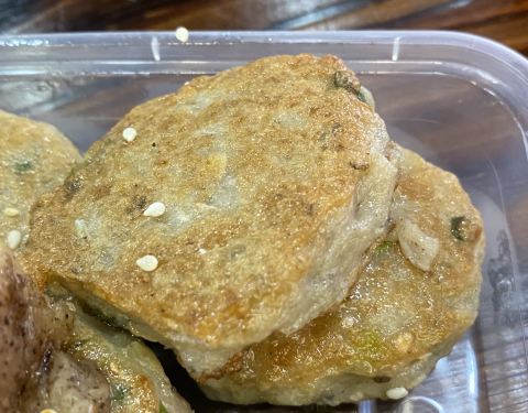 在沙湾古镇上闲逛时见到这家裕记均安鱼饼。他家在沙湾镇大巷涌路23号,位于商业街较显眼的地方,非常好找。 他家的店面不大,小吃店的装修。门前摆着不少小吃,有均安蒸猪、鱼饼、莲藕饼和墨鱼餅,还有艾饼等,价格还比较实惠。像蒸猪一份30元,不过我不很喜欢吃,就没有买。买了鱼饼,鱼饼结实弹牙,口感不错。难怪裕记均安鱼饼门前不断有人在排队。