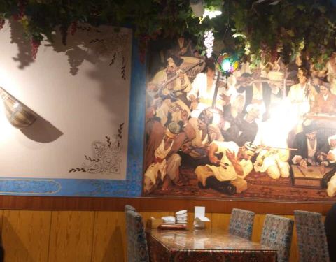 原来山水人家改的,射灯开的多很热,但大厅对角的柜式空调根本吹不凉。新疆菜都做的不是很出彩,一般般,但价格可比巴依老爷高。
