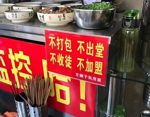 不忘,而且每块告示、标语都透着傲娇,几乎就差“爱吃吃,不吃滚”了,但真吃一碗面,就有都是噱头的感觉了