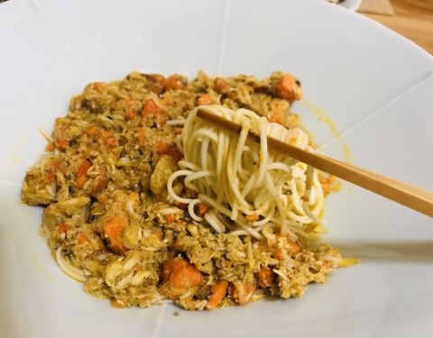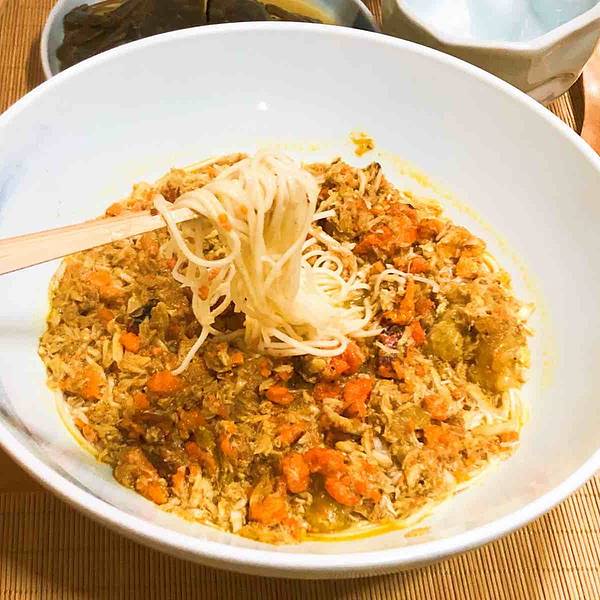 - 蟹肉肉上面平铺了一层蟹腿肉,下面是面条,面的味道稍微淡了一些 醉蟹也是我的最爱,可惜是公蟹,黄有些少