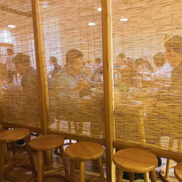 ...,窗边就是江,店内装修为简约竹编风格,简单干净,很佛系,环境和服务绝对是网红面馆中最讲究的一个