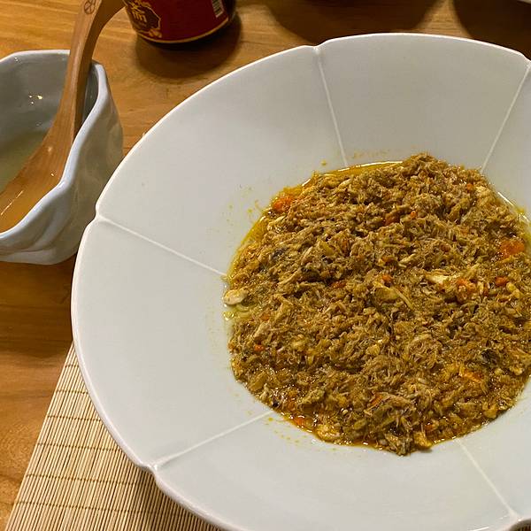 两个人一起share蟹黄金和蟹肉肉,这样子都能吃到,蟹黄金不错,很鲜,蟹肉肉是醋味的,对重口味星人来说有点淡,有机会想尝尝蟹太极嘿嘿,最后会送一个碗留作纪念还不错。