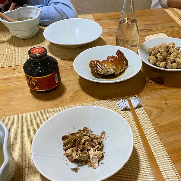 有朋自远方来,想吃这家的蟹~餐厅距离外滩3号特别近。南京东路走过来10分钟左右。 于是约了晚上一同拔草。 工作日晚上8点依然满座。蟹肉肉沽清了,好在蟹黄金还有。座位不多,人数多的话需要等位。 等位牌做成了有趣的葫芦形,以十二地支为主题,我拿到的是亥。大厅中间的葫芦装饰很有趣,莫名让人联想到了葫芦娃。 服务没有传说中的那么好,等位等进了N个两人位,后面还是等不及主动提了把桌子拼起来才入了座。 大闸蟹好吃的,虽然是春天的蟹也很肥,饱满入味,口有余香。 蟹黄金和之前吃过的168的口感差不多。吃到后面觉得有点腻,面条煮得太软。 免费畅饮的气泡水和矿泉水要主动问服务员才会讲。 花生作为闲聊零食还不错。 姜茶很姜茶,配蟹刚刚好。 点蟹黄金还送了一盒胚芽米。