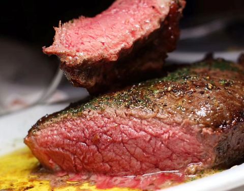 ...后,肉质的水分短时间内锁在里面才会有好的口感,否则生了不敢吃,熟透了又很柴,粉红色就是最佳时机
