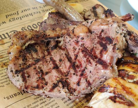烤肉拼盘超级大一盘,里面的烤鸡,羊排,牛排还有鸡肉和牛肉香肠配合黑胡椒酱味道还可以,不过餐厅装...