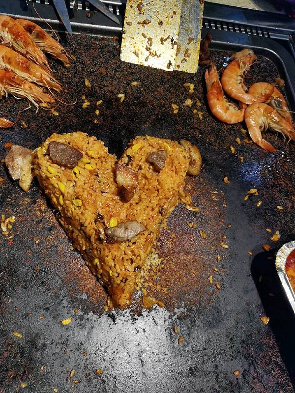 店铺装修风格也很韩式,铜盘上放入薄薄的肉片、蔬菜、金针菇,当然还有韩国人最爱的章鱼,再加上与特制汤汁的融合,香气浓郁的“水煎肉”便烹饪而成了。