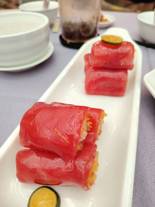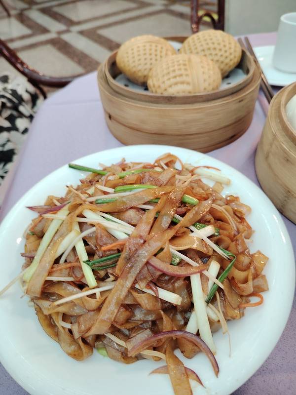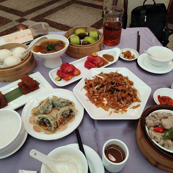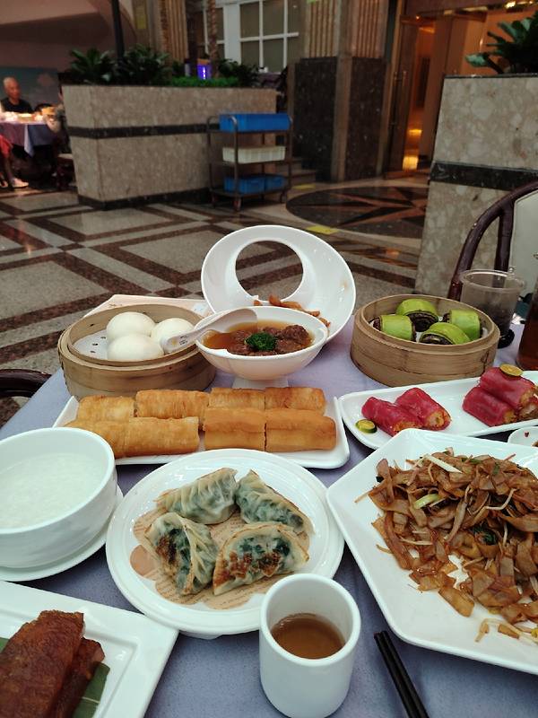 自带的农垦红茶很好喝,每次都点的炒牛河、韭菜煎饺、红米脆皮鲜虾肠粉、马蹄糕等也是保持水准的。