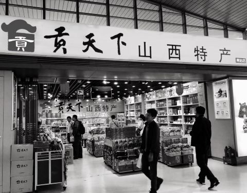 这家店在太原南站候车室三楼商品部,店挺大,有小米、荞麦、醋、太谷饼等当地特产,价格相对于外边超市的较贵,不过买点特产也方便,比较全