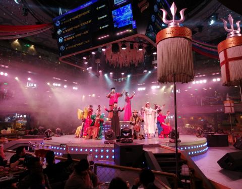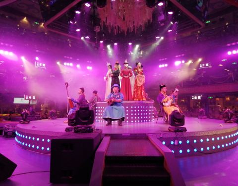 - 非常有特色的一家餐厅,大厅中央是舞台,7点以后有各种蒙古族特色的演出,可以花100元请演员敬酒...