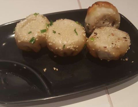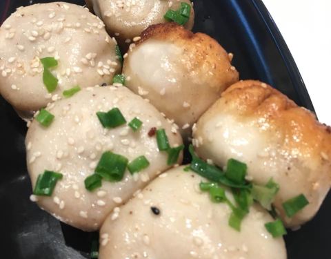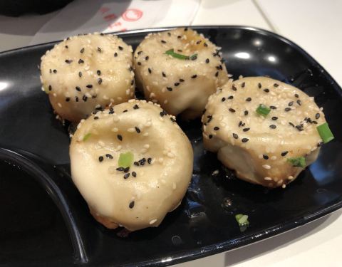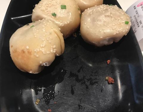 头一次来青浦新城,中午饭点时过来。拥有市区里点单的经验,先没看店里的套餐,直接查了手机,用口碑买了一套蟹粉生煎和一份汤,再加6个小杨生煎。这样两个人应该吃得管饱了。洒黑芝麻的,是蟹粉生煎。咬开后其汤汁是呈蟹粉汤汁。 生煎是自取的,汤会送到座位上。吃起来觉得与市区店里口味一致。店里也有洗手池。