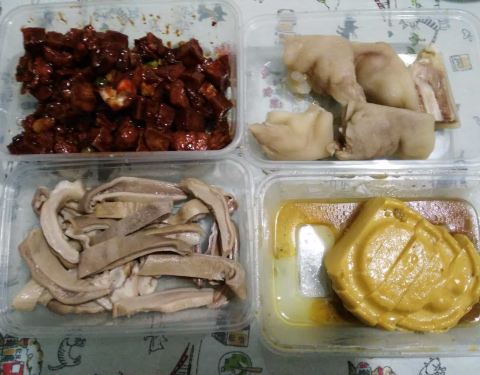路过向天歌烧鹅老铺看到有人排队买熟食就凑热闹也排队买了4个品种的,有素鲍鱼、糟猪肚、糟猪手还有八宝辣酱。总的来说味道不错。特别推荐素鲍鱼和糟猪手