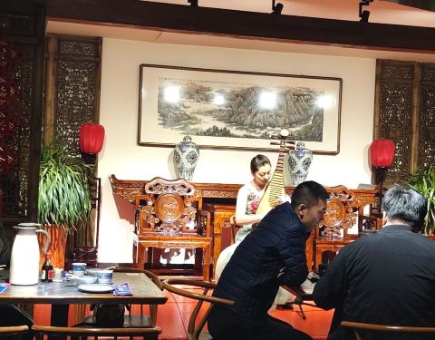 - 店面营业面积很大,装修很有特点,菜品种类齐全,味道不错,还有弹琵琶的伴宴