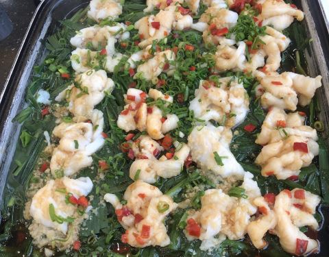 大个扇贝做的特别好吃,蒜茸的!海鲜大厅就餐5折的,算算一只只需要6块钱左右还是很合适的呢!菜量很大,我们点的半份的菜,结果真的觉得在别的地方的话这个可以当整份的上了!菜也很好吃