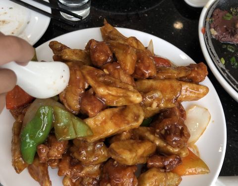 - 点了茄子肉段,还有半只特色鸡,味道很好,菜量很大,服务员态度很好,耐心介绍特色菜