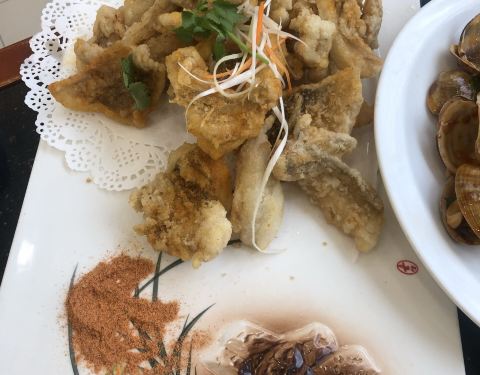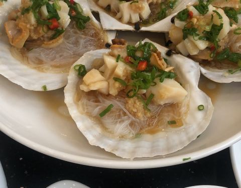 - 大个扇贝做的特别好吃,蒜茸的!菜也很好吃。海鲜大厅就餐5折的,算算一只只需要6块钱左右还是很合适的呢