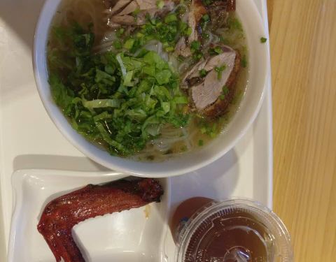 烧鸭皮不够脆,鸭翅烤得有点干,桂花凉粉一股糖浆味环境好,服务还行
