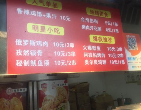 好吃 味道棒棒哒!!卫生干净 肉串很大 鸡排也很大 鱿鱼好吃 还送饮料