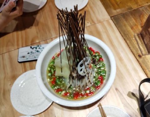 本来以为这家人会比太古里那边的人少点 没想到打车过来 也是超多人在排队 我们前面8桌人在等位 以为很快 但是等了超久 差不多要1个小时感觉 第一次吃钵钵鸡 就跟串串一样一样的 只不过是冷的 钵钵鸡有两种口味 ...