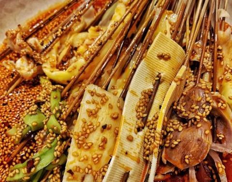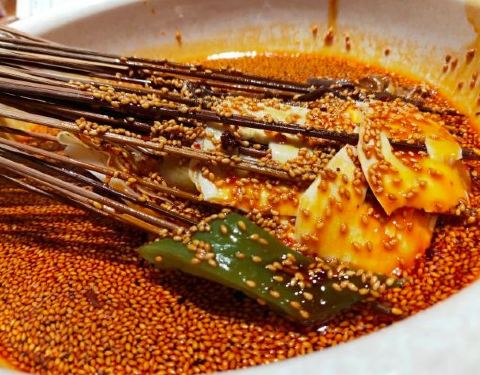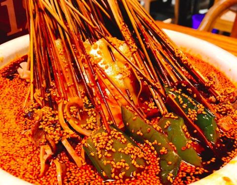 第一次吃到正宗的钵钵鸡.. 做为一只外地资深吃货,在朋友的带领之下 排了半个小时的队,终于吃上了成都这家钵钵鸡. 进门只闻到香味,口水已流出来。 菜品随意挑选.顺手就拿. 一把一把拿的感觉真爽. 吃什么不重要,过程很重要! 红油料,满盆红油.铺满芝麻。 油而不腻,一串吃完就想再接一串. 我先吃... 藤椒料,感觉舌头在跳舞。好刺激好刺激.. 炒饭一绝,吃完还想再来一碗,肚子真的不给力. 春卷颠覆了我对油炸春卷的印象,蘸料有点酸甜口味,卷皮软,内陷酥脆.真的新口味 醪糟鸡蛋. 这是放在最后吃,想清理口腔。 可曾想过.... 醉了. 4人消费100多一点,完美。实惠。美味。 我好想留着成都