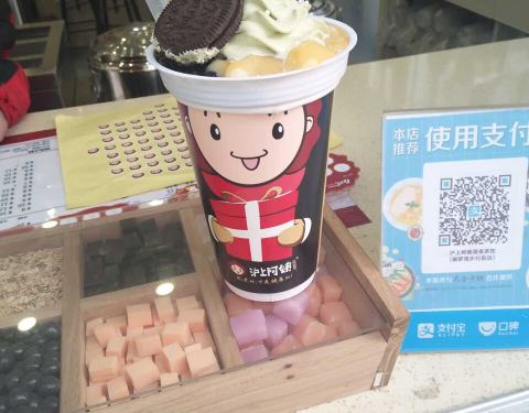 店内装饰干净明亮,只有外卖窗口,只能打包外带。菜单上和其他奶茶店差不多~~ &血糯米奶茶& 点了招牌的血糯米奶茶,只能说它和上海的估计只有“阿姨”两个字是一样的。奶茶的味道单薄,没有浓厚的香味。奶精和甜味充斥,血糯米不少,不过煮的过头,太软没有糯米的韧劲了。口味一般般。
