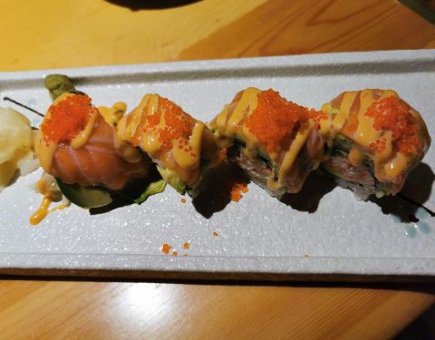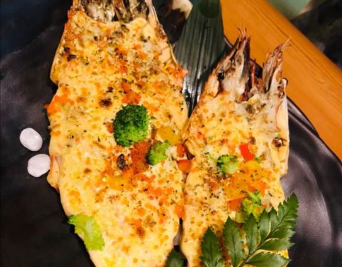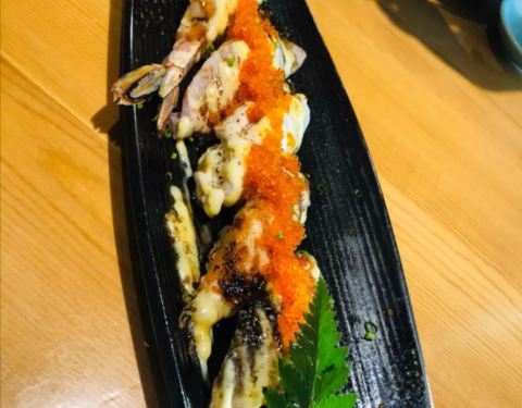 - 食材很新鲜,三文鱼很鲜嫩,寿司里面的大虾很鲜甜,招牌卷吃多了有点腻,芝士烤大虾很大只,焗蟹宝每...