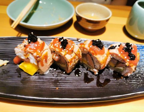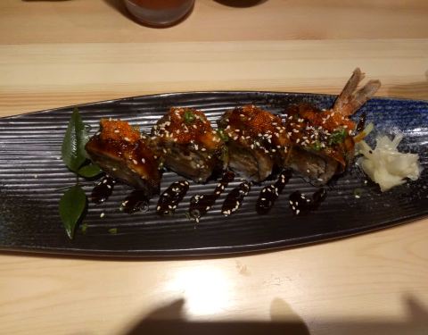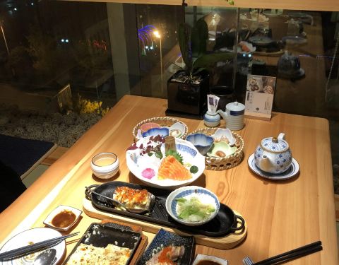 - 里面环境很好,需要脱鞋,服务也不错,菜品摆盘精美,口味不错,寿司拼盘,烤串,都很好吃