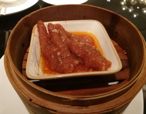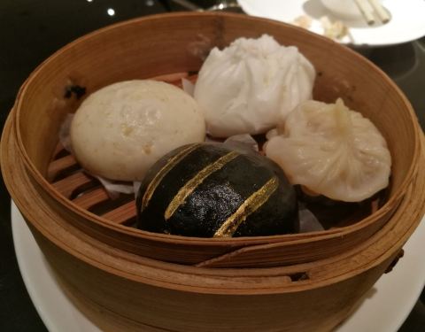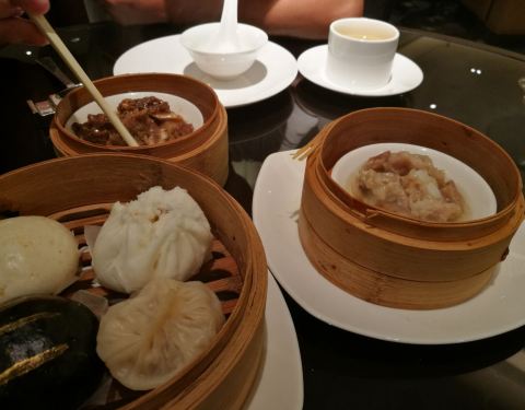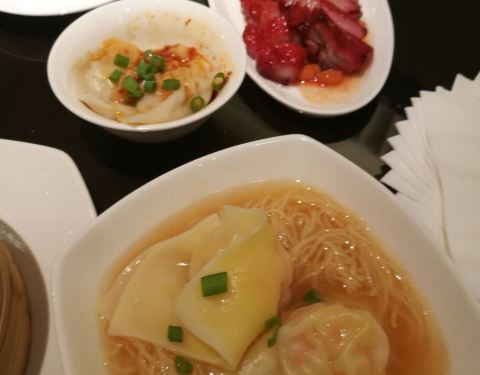 这家店在茂业百货旁边,整个看起来还是挺高大上。团购成98一个人,提前一天预约。餐厅在七楼,面积比较小,并且不靠窗。服务人员挺多的,态度也特别好。菜是点了以后再做,比较新鲜。而且是按照个数来点,这个我比较喜欢,可以多尝试几个品种。蒸点我比较喜欢虾饺皇,蜜汁叉烧酥,万豪黑金包,南翔小笼包。干炒牛河和钟水饺,蒸凤爪,黑椒牛仔骨,蒸排骨都不错。唯一觉得不好吃的就是云吞面,特别腥。服务员收空盘特别及时,五星级的服务就是挺好。最后结账收了一个人5元的茶位费,领了一张免费停车券可以免费在地下停三小时。总体感觉服务好,品种虽然少一点,不过我觉得还是够吃。