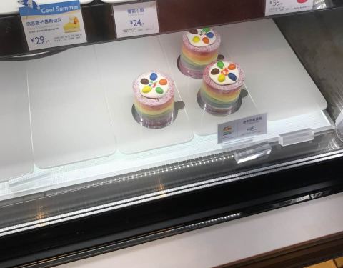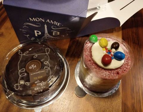 服务员小哥很热情推荐了别的打折款,少女心的我们还是被五颜六色的蛋糕所吸引,哈哈哈哈哈哈哈哈哈,...
