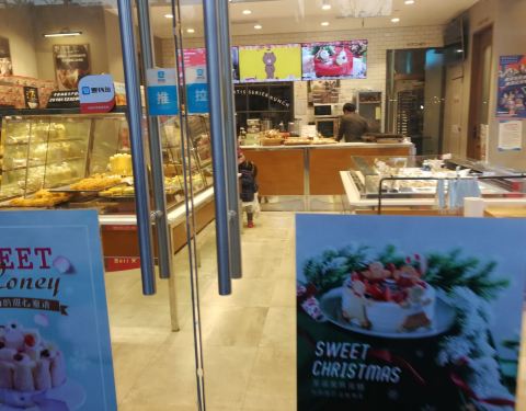 巴黎贝甜是连锁店,店里面包种类很多,比如羊角,鸡蛋芝士三明治,店长和服务员都很好说话,里面有烤好的,也有还来不及端出来的面包。另外,有一个专门的陈列蛋糕的橱柜,样子都很好看。巴黎贝甜面包蛋糕都很好吃,性价比还是不错。店在缤纷城1楼,靠近地铁7号线5号口,当然这家店的生意挺好,去晚了剩下的面包就不多了。