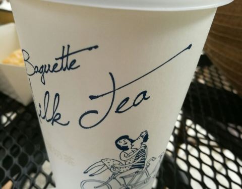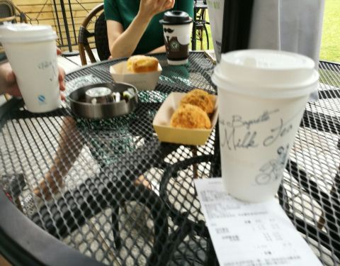 因为等人,就在靠近瑞平路的“巴黎贝甜”露天座位上坐了一会儿,买了两杯奶茶,一杯拿铁,服务不错,能送到座位上,就是门口大大广告星期二用支付宝八折没有兑现,同伴喜欢这家奶茶,说味道平和,不会象有的店中奶茶甜得发腻。友情提醒一下,门外的桌子及时清洁一下,尤其不要忘记堆满烟蒂的烟灰缸。