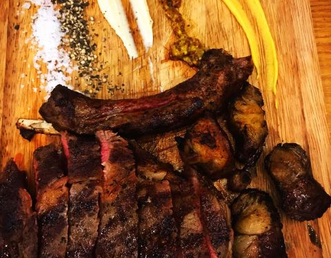 之前听朋友介绍过,就差把这里招牌红酒牛排吹上天了,所以来这里拔种了多日的草。地方贼偏僻,在无里4楼,跟无里其他店一样,充满一种艺术家一样的生人勿近的孤傲感。我在感叹地方偏僻的时候,老板(一个茁壮的大汉)说了一句让人感慨的话。无里是个来一定是带着理由和目的才会来的地方,那我们也要做一个让你会带着充足的理由,会因为爱上才来的店。我们所以只做肉食,这就是来者旅行的目的和旅行的意义。同志们,这才是境界啊。于是我点了一份红酒牛肋,本来以为会很好吃,吃了发现,根本就是草泥马怎么这么好吃!!不吹不黑,真的很好吃!份量足够,500g霸王龙吃都觉得饱,最主要是口感很棒。会自己做菜的都知道,红酒泡过的牛肉口感很嫩,加上店里做的火候刚刚好,整个红酒牛肋口感非常不错,味道也贼霸道。这家店虽然号称只做肉食,但是薯条真的也是很好吃,独特的蒜香蛋黄酱,让人印象深刻。另外推荐他家车厘子酒,谁喝谁知道