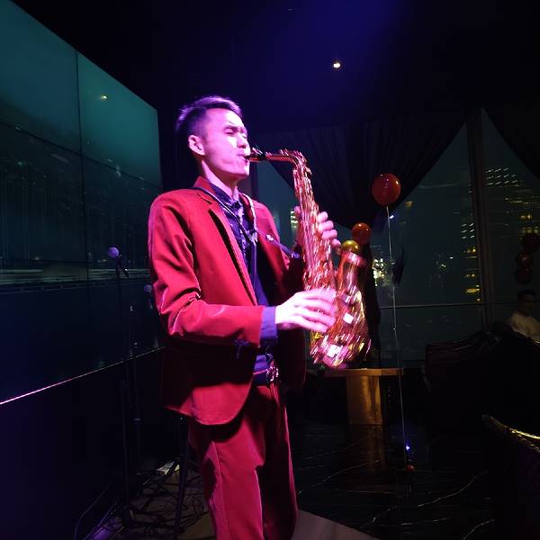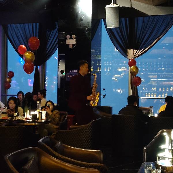 南宁云端47是个清吧,平时有萨克斯和歌手表演。元宵节这里搞了个大花派对,大咖朱哥哥倒是服装跟棉袄大花很配。