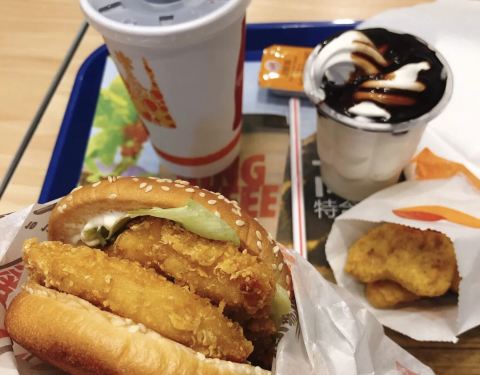 一直都听朋友说汉堡王的东西很好吃,今天有空就去尝尝,因为第一次吃不知道汉堡的量有多大,怕吃不饱就要了一个三层牛肉的汉堡,真的是真材实料呀,吃到一多半的时候就感觉有些撑了,不过因为味道确实很好,所以...一直都听朋友说汉堡王的东西很好吃,今天有空就去尝尝,因为第一次吃不知道汉堡的量有多大,怕吃不饱就要了一个三层牛肉的汉堡,真的是真材实料呀,吃到一多半的时候就感觉有些撑了,不过因为味道确实很好,所以还是全部干掉,很满足哦