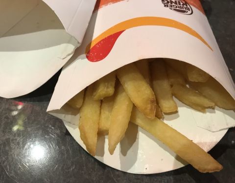 团购的薯条,薯霸王中2包,今天来万福广场顺便换了,价格很实惠,10.5元,抵扣了点评5元优惠券,实际付款5.5元,给了两袋番茄沙司,6点多,店里人不是很多,拿餐很快的,薯条还是先做的好吃,拿到手就吃了一袋,...团购的薯条,薯霸王中2包,今天来万福广场顺便换了,价格很实惠,10.5元,抵扣了点评5元优惠券,实际付款5.5元,给了两袋番茄沙司,6点多,店里人不是很多,拿餐很快的,薯条还是先做的好吃,拿到手就吃了一袋,不蘸沙司也挺好吃。