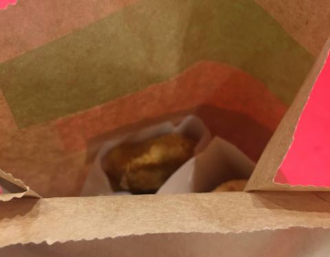 团购的薯条,薯霸王中2包,今天来万福广场顺便换了,价格很实惠,10.5元,抵扣了点评5元优惠券,实际付款5.5元,给了两袋番茄沙司,6点多,店里人不是很多,拿餐很快的,薯条还是先做的好吃,拿到手就吃了一袋,不蘸沙司也挺好吃。