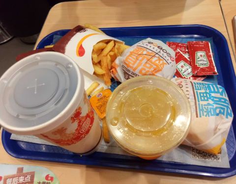 汉堡王的早餐,这也是第一次吃。其实汉堡王很多年前就品尝过,那时的汉堡王给我印象最深的是个头大,真的比其它大一号,有一种实惠的感觉,味道嘛也还不错。如今的汉堡王无论早餐还是正餐,汉堡的分量也缩水不少,虽然价钱没敢怎么上调,其实已经是变相提价。本店位于北宁湾临街底商,位置一般,里面空间不大,房租压力不小吧。随手拍了几张,本来准备给予奖励好评,没想到服务员怯怯想阻止,这行为难以理解,有怠慢顾客之嫌,好吧,没啥犹豫差评送给你。