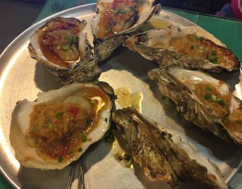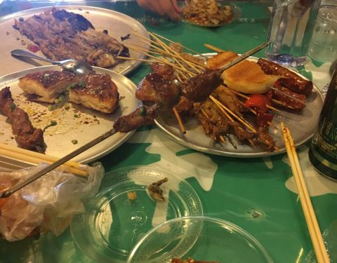 想吃烧烤,家周边的店子吃多了,不想再吃,朋友推荐了冬瓜山烧烤夜市。开始不熟悉路,走了很多冤枉路才找到地方,离了100多米就闻到了烧烤的味道。按推荐到了这家店,店面不大,进去点了羊肉串,牛肉串,生蚝,茄子,无骨鸭掌,馒头片,鸡翅,海鲜饭,泰山烤火烧等等,味道不错,偏辣一点,蜂蜜鸡翅适合小孩子吃,其他就是我们喜欢的了。就是也没有土豆片,金针菇。海鲜饭虽然海鲜不多,味道倒是不错,虾子好吃。
