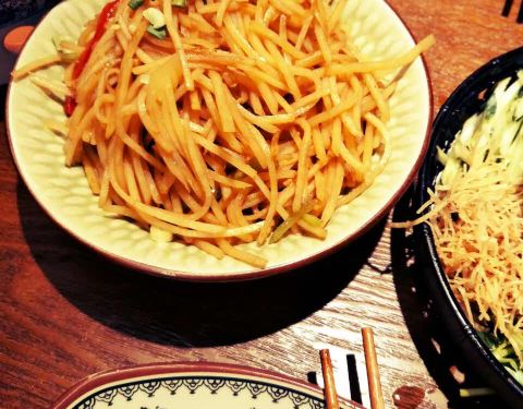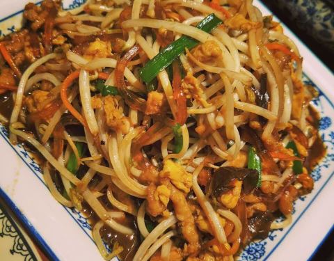 锅包肉有点甜,饼不错,薄薄的厚的都可以。拉皮最好,麻将够足