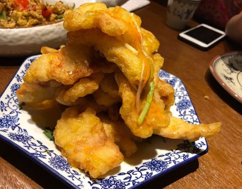 最喜欢他家的摇滚拉皮,酸酸甜甜的,锅包肉一般,感觉糯米粉裹太多,不是很正宗,甜面酱配筋饼我可以干吃两份,哈哈哈。酸汤龙利鱼很开胃。希望能有点黄瓜什么的卷饼配菜,不然吃着会很腻。