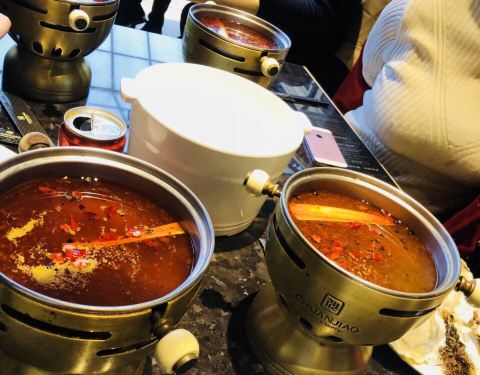 - ...最有特色的就是这里不仅是自助餐品种琳琅满目,每个人还有一个小铜锅,自己选择锅底,海鲜火锅吃起来