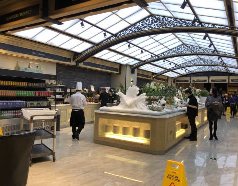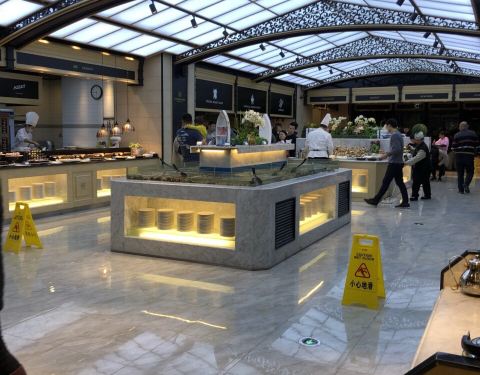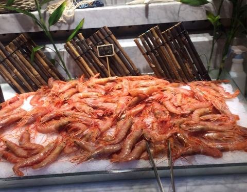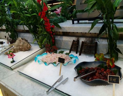 在招行的app上看到这家店参加周三五折的活动,139块钱一个人,果断跟小伙伴一起买了券,晚上过来吃饭。这家店很大,整个二楼都是他们家的。取菜区域分为两块,入口右转的这一片比较大,以各种海鲜,甜品,烧烤,...