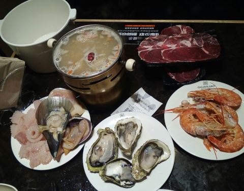 - 虽然说的是海鲜自助火锅,不过店家还是以各种虾和贝壳类为主,鱼,蟹等的选择比较少